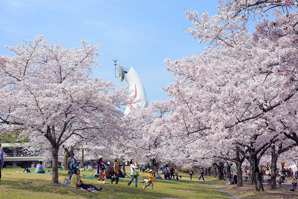 佔地達260公頃的「萬博紀念公園」內,種植了超過5,000株以上不同品種的櫻花,將整片園區染成深淺不一、絢爛奪目的粉紅色。每年大約從3月中旬開始,便從寒緋櫻、八重櫻開始綻放,一路由不同花種接力,直到4月中旬都是絕佳的賞花期,如果不想和大批觀光客人擠人,不妨挑平日較早的時段拜訪。