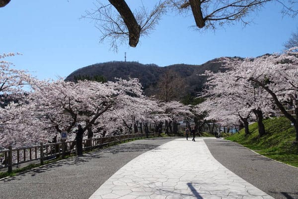 這裡有大約400株染井吉野櫻和八重櫻綻放美麗的花朵,由於公園內坡道起伏不定,可以從各種角度欣賞櫻花也是一大看點。從公園眺望津輕海峽及街道的景色絕佳,距離海邊也不遠,讓這裡成為能夠同時享受櫻花及美景的地方。