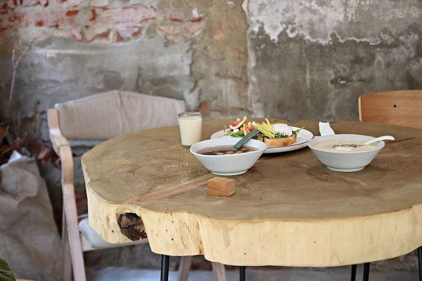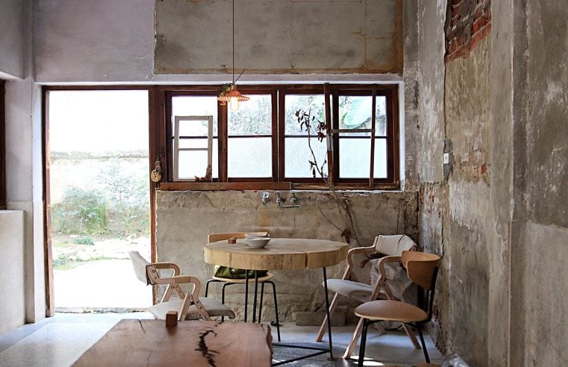 親自來能感受到 德山醫院 的規模,一二樓兩層建築往裡走別有洞天!清晰可見的鋼筋混凝土構造有別於當時的日式木構築,更棒的是 桃城豆花 並沒有更改太多設計,以修繕的方式保留了許多醫館過去的痕跡,讓鋼筋自然裸露、斑駁的紅磚自然露出,就連經過五十多年歲月洗禮的檜木門窗框,都只以磨去殘漆的方式保留了下來。