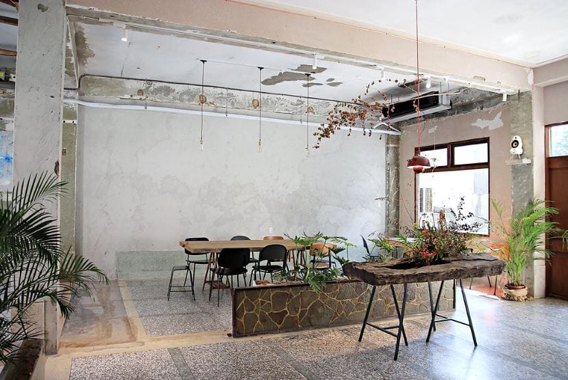雖叫做「空氣圖書館」但裡面其實沒有書,而是有許多蕨類植物、木作櫃子餐桌椅所組成的空間,乾淨清爽,內外佈置都蠻好拍照,尤其是這片植栽區讓人有感覺有走進叢林的味道。