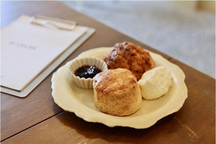 一樓主要是烘焙區以及購買櫃台,二樓才是主要用餐空間, 我們來的時候約莫是中午,也是口味最齊全的時候,近十種司康口味, 還有最流行的肉桂捲,雖然廚房還有陸續現烤出爐,但是每種口味都是手工限量製作, 太晚來就會賣完。